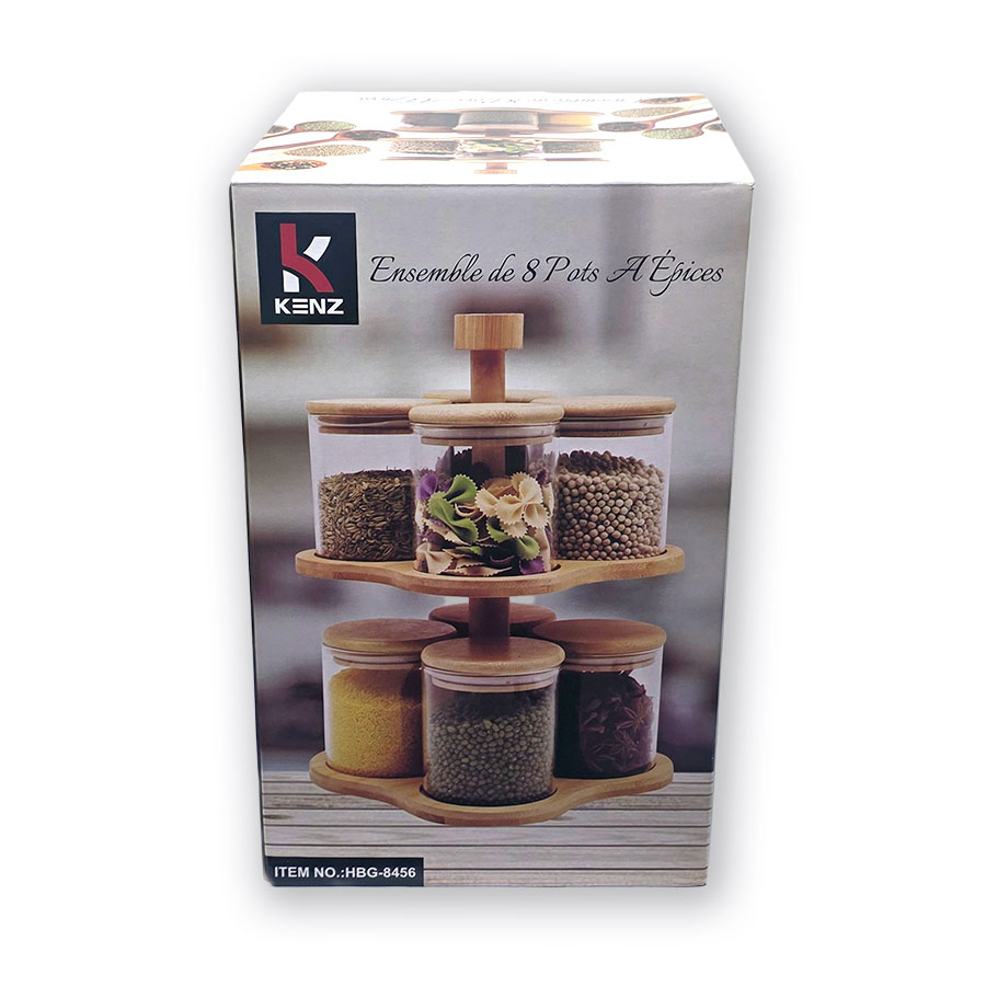 Kenz Pots à épices, service à épices 8 pièces avec support
