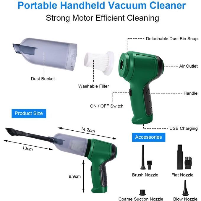 Mini aspirateur à main haute puissance rechargeable sans fil & Souffleur d'air 2 En 1, Voiture, Maison, Poils d'animaux, Ordinateur Gris